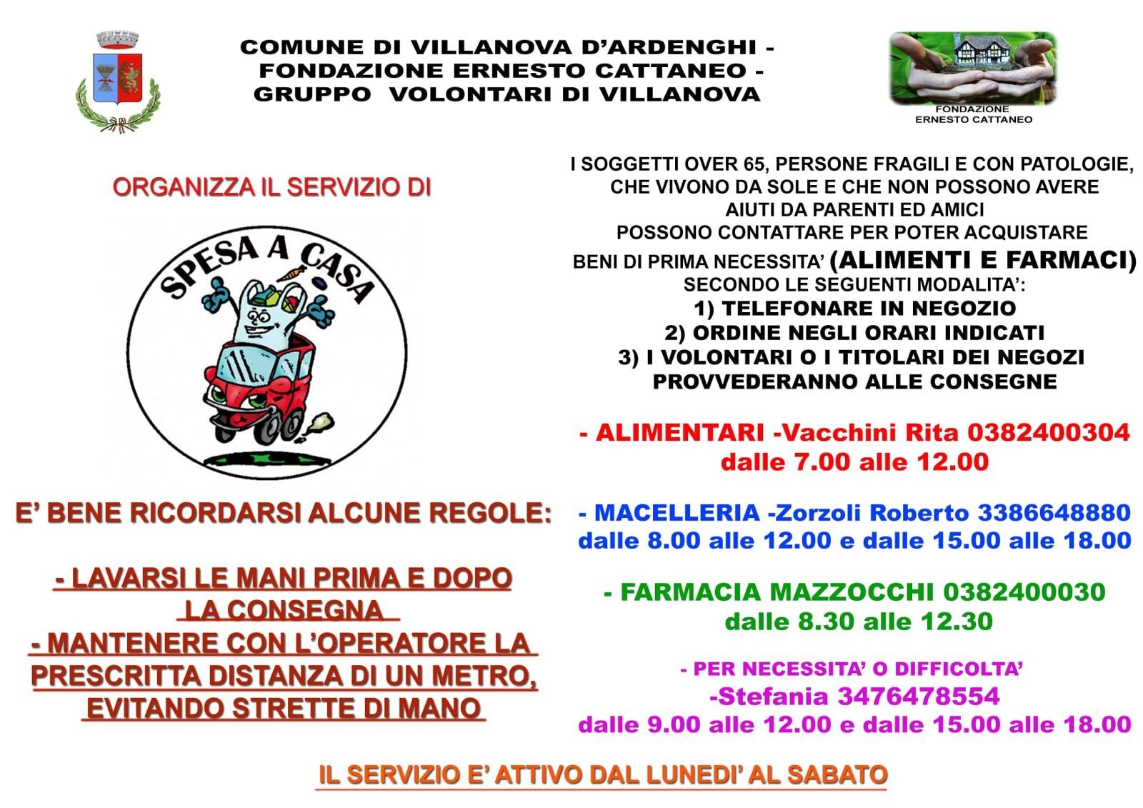 Il comune di Villanova d'Ardenghi in collaborazione con la Fondazione Ernesto Cattaneo e il Gruppo Volontari di Villanova organizza : spesa a casa