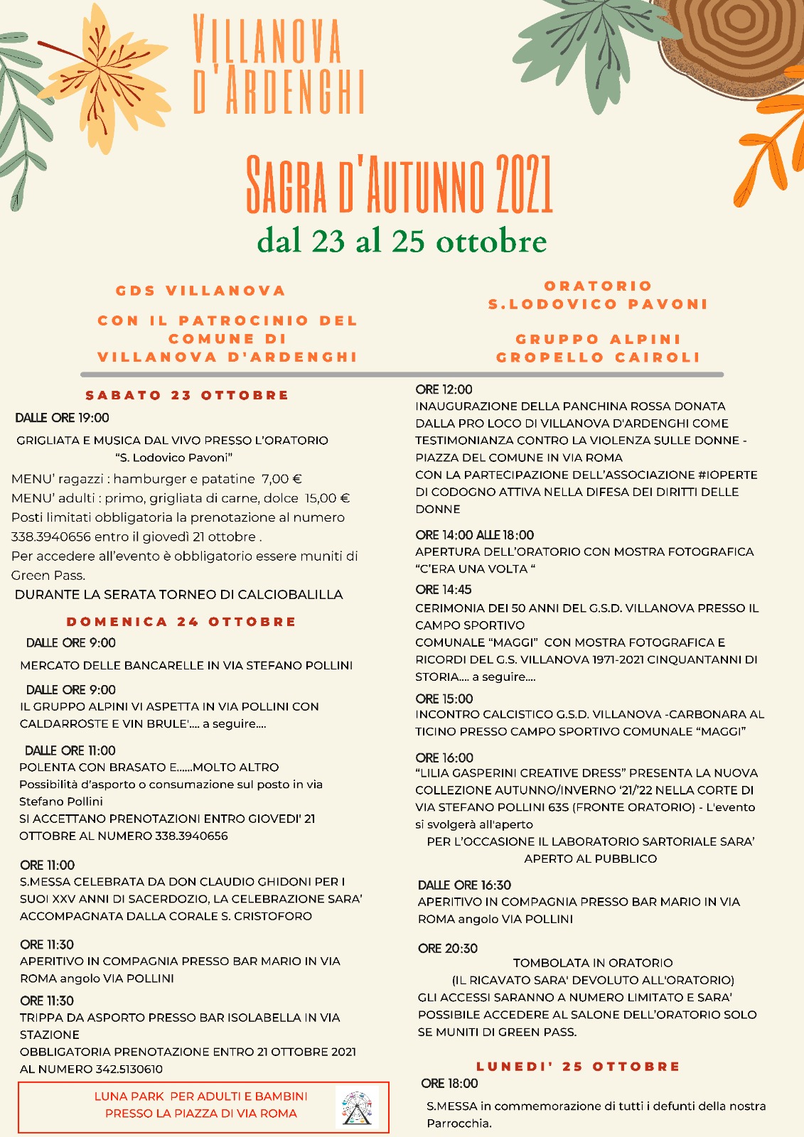 Pubblichiamo il volantino della Sagra Patronale che si svolgerà dal 23 al 25 ottobre 2021